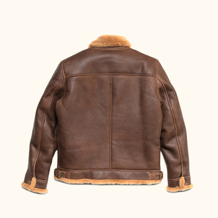 In the grand tradition of those audacious airmen who dared to dance upon the winds of war, our wool shearling leather jacket stands as a living testament to their indomitable spirit, reborn with a touch of modern allure.
