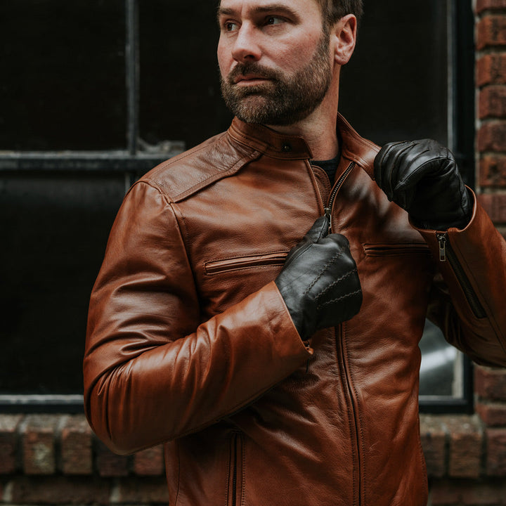 Thompson Leather Moto Jacket | Whiskey Brown