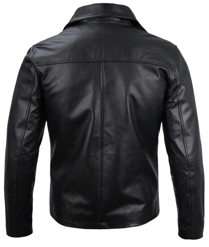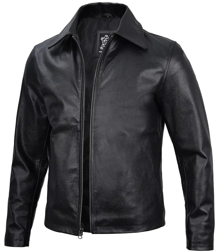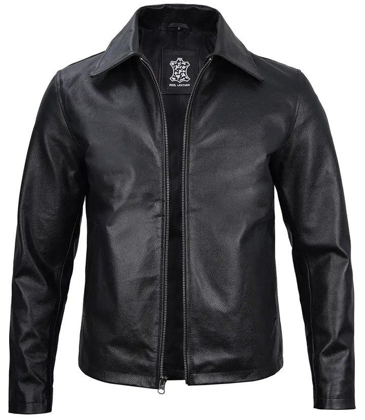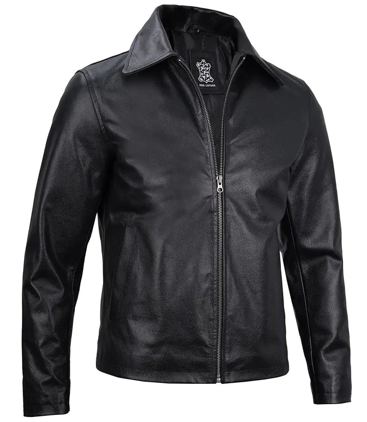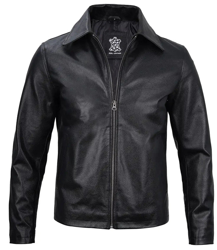 Upgrade your wardrobe with the Harrington Men's Black Shirt Collar Cowhide Leather Jacket. Made from real cowhide leather and fully lined with soft polyester, this piece offers both comfort and resilience. It features a shirt-style collar, front zipper closure, and functional pockets, perfect for commuting, casual outings, or layering through the seasons.