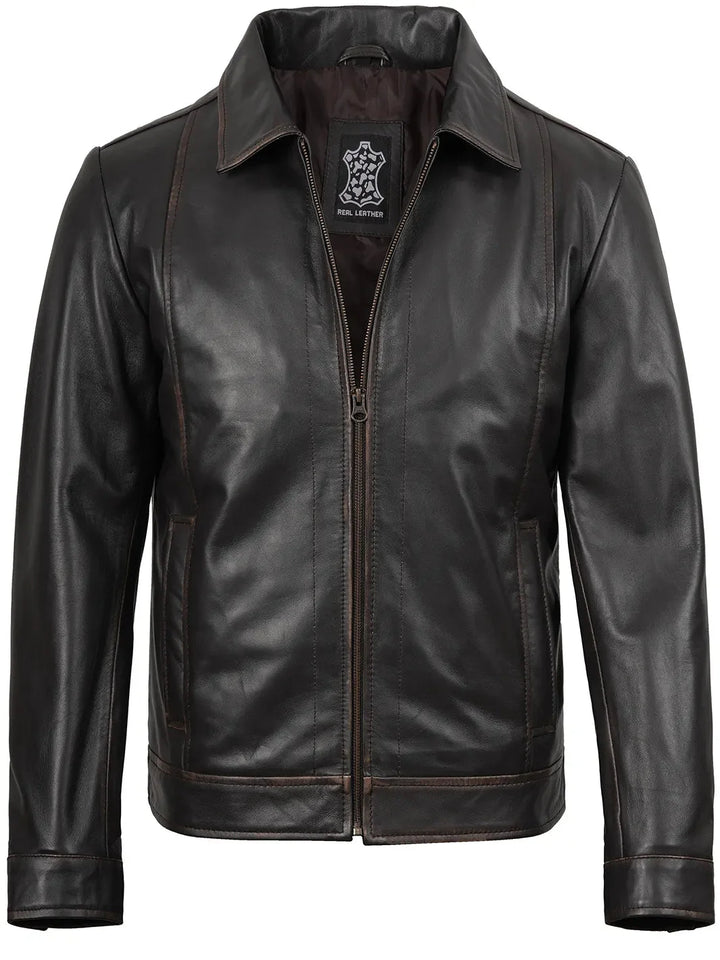 Embrace the essence of the legendary with this distinctive Rub Off Dark Brown Leather Jacket for men. Meticulously crafted, the jacket captures the vintage yet unique persona of the character.