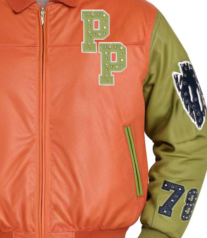 The maverick spirit of defiance will be strengthened by our chic Pelle Pelle Renegades premium high-end animal-skinned orange-green leather jacket. The front left side is adorned with a detailed, structured Pelle Pelle "P" that accentuates the front look with eye-catching, fashionable colors. It is constructed with a bold street-style aesthetic and exudes a sense of confidence. The striking orange and green colors exude confidence. The Renegades' iconic embroidery on the back takes centre stage, making you the centre of attention wherever you go. The synthetic leather jacket looks better overall, thanks to its vivid colors.