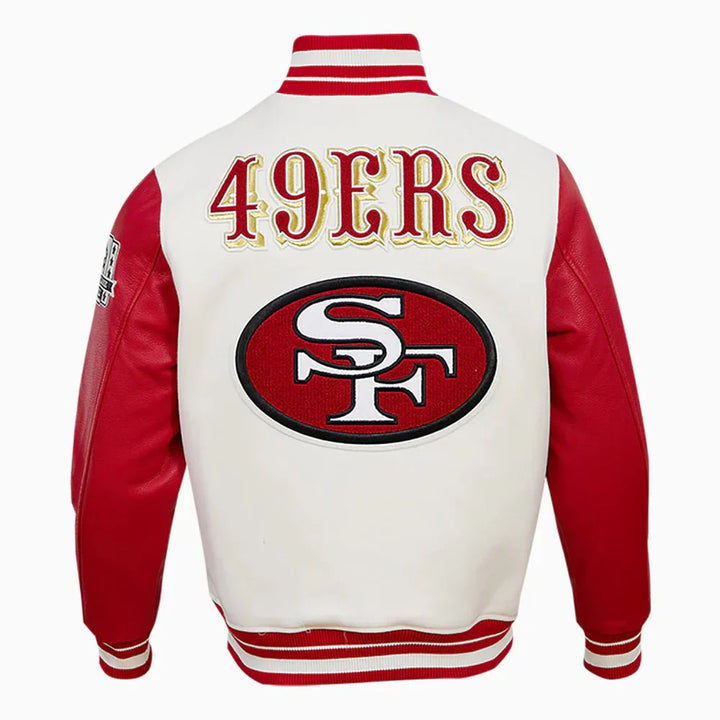 Rep your San Francisco 49ers in style with this classic NFL varsity jacket. Designed for die-hard Niners fans, this jacket features official team graphics, bold embroidery, and a premium wool blend that makes it a must-have for any game day or casual wear.