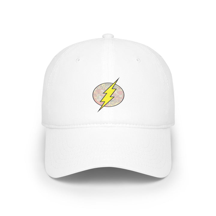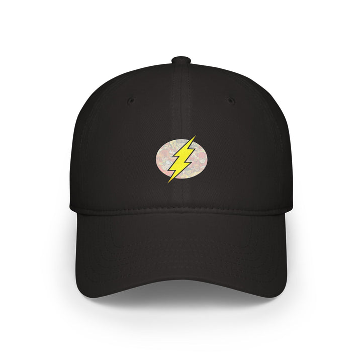 Stylish Red Low Profile Baseball Cap with Lightning Bolt Design