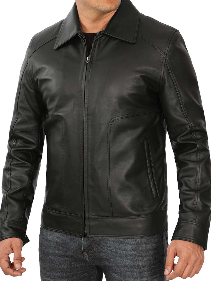Thomas Men's Black Harrington Vintage Leather Jacket